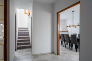 La vivienda consta de 5 dormitorios y 3 baños distribuidos en tres plantas, un solárium con vistas panorámicas de la nueva ciudad de Estepona para disfrutar de tardes y noches del clima mediterráneo.
