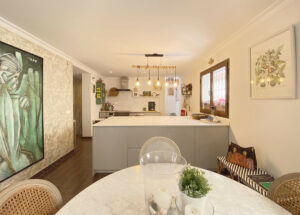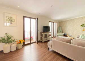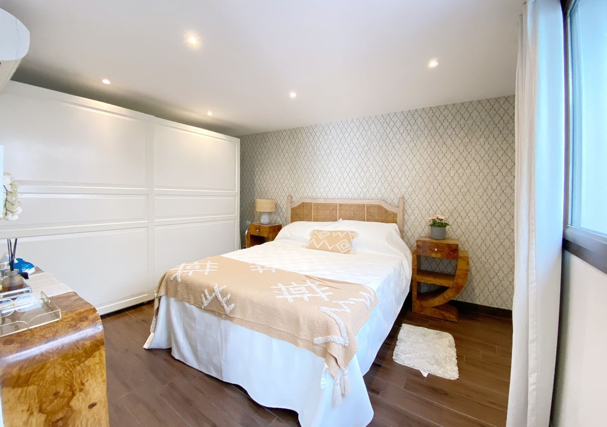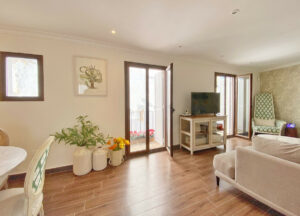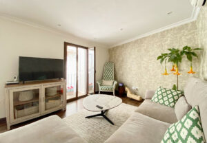 En la planta superior; hay un impresionante salón comedor con balcones a la calle y otro pequeño balcón hacia el patio interior de la casa. Una moderna cocina con isla central. Y 2 dormitorios dobles, ambos con cuarto de baños en suite.