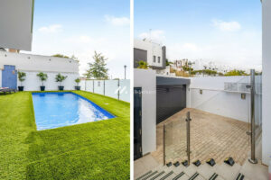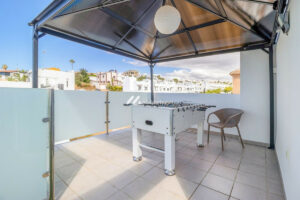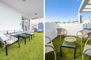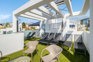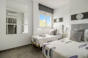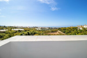 En la planta superior encontrarás tres dormitorios grandes y un baño con un diseño moderno. Dos de los dormitorios tienen acceso directo a terrazas privadas – perfectas para disfrutar del café por la mañana con vistas. En la planta más alta se encuentra la espectacular azotea, que ofrece aún más espacio para el entretenimiento al aire libre y vistas panorámicas impresionantes.