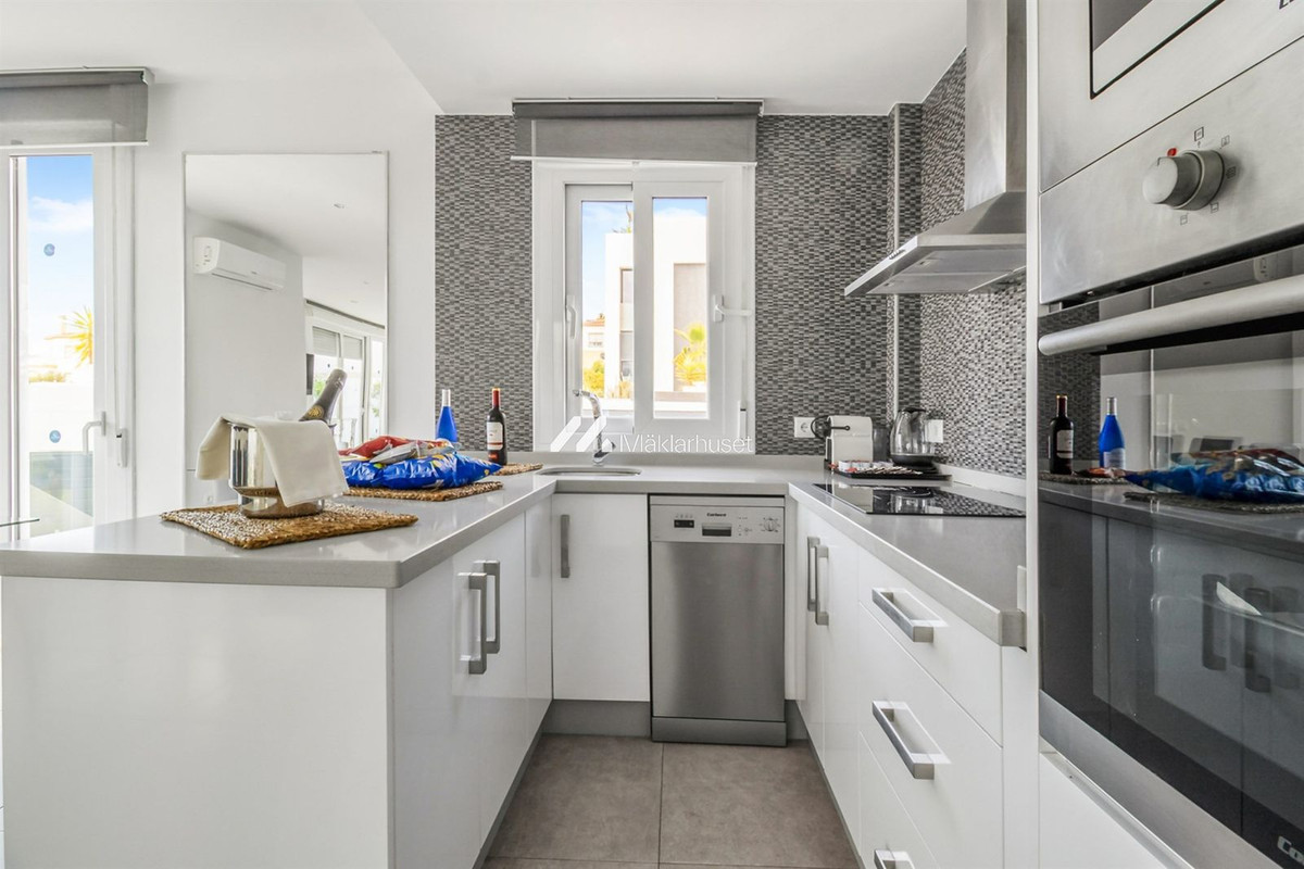 El concepto de planta abierta crea una atmósfera luminosa y espaciosa, conectando perfectamente el salón, el comedor y la cocina contemporánea – el verdadero corazón del hogar. Desde aquí se accede a una impresionante terraza, donde te espera una vida al aire libre de lujo: una piscina privada de agua salada, amplias zonas de descanso y un exclusivo cocina exterior que convierte cada comida en una experiencia.