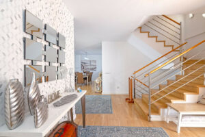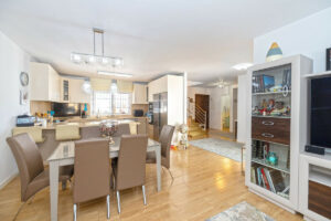Con una superficie construida de 238 m² sobre una parcela de 200 m², la vivienda se distribuye en cuatro plantas que aprovechan al máximo la luz natural y el espacio. Dispone de seis dormitorios, cuatro baños (con posibilidad de habilitar un quinto) y dos amplios garajes. La planta principal alberga una espaciosa zona de estar muy luminosa, comedor independiente y cocina moderna totalmente equipada. El dormitorio principal incluye un gran vestidor, que podría convertirse en un dormitorio adicional según las necesidades de la familia.