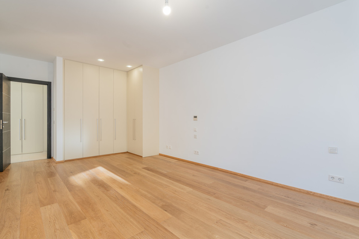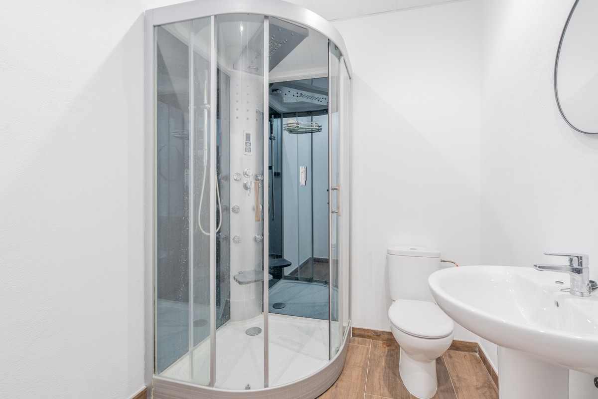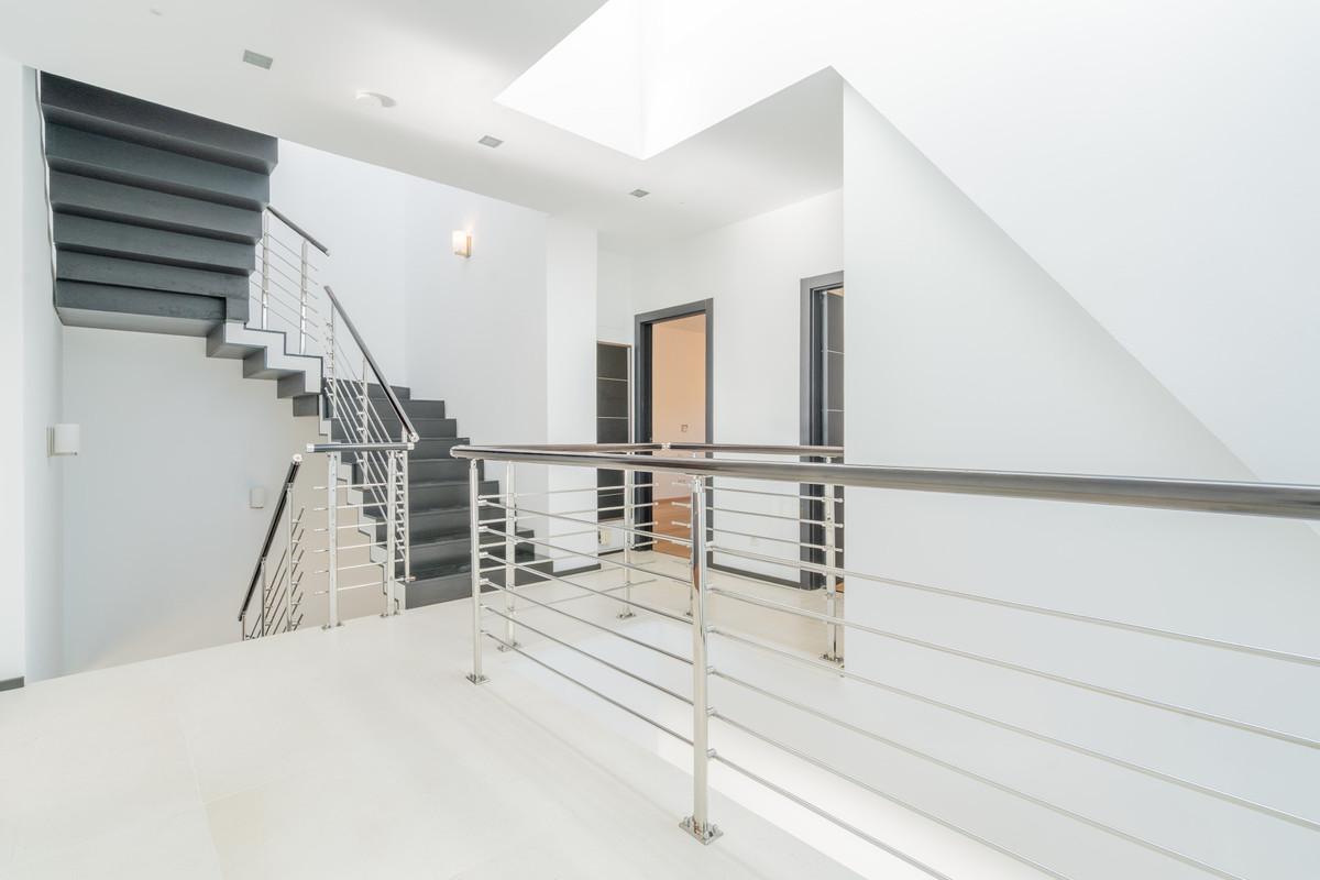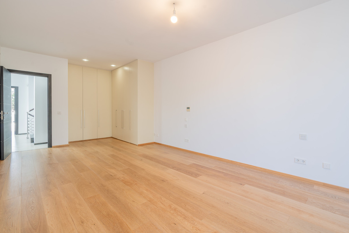 La villa dispone de 5 dormitorios, cada uno con su propio baño, un amplio garaje, trastero, ascensor privado y un magnífico solárium en la azotea con vistas panorámicas. Además, cuenta con piscina privada en la planta baja.
