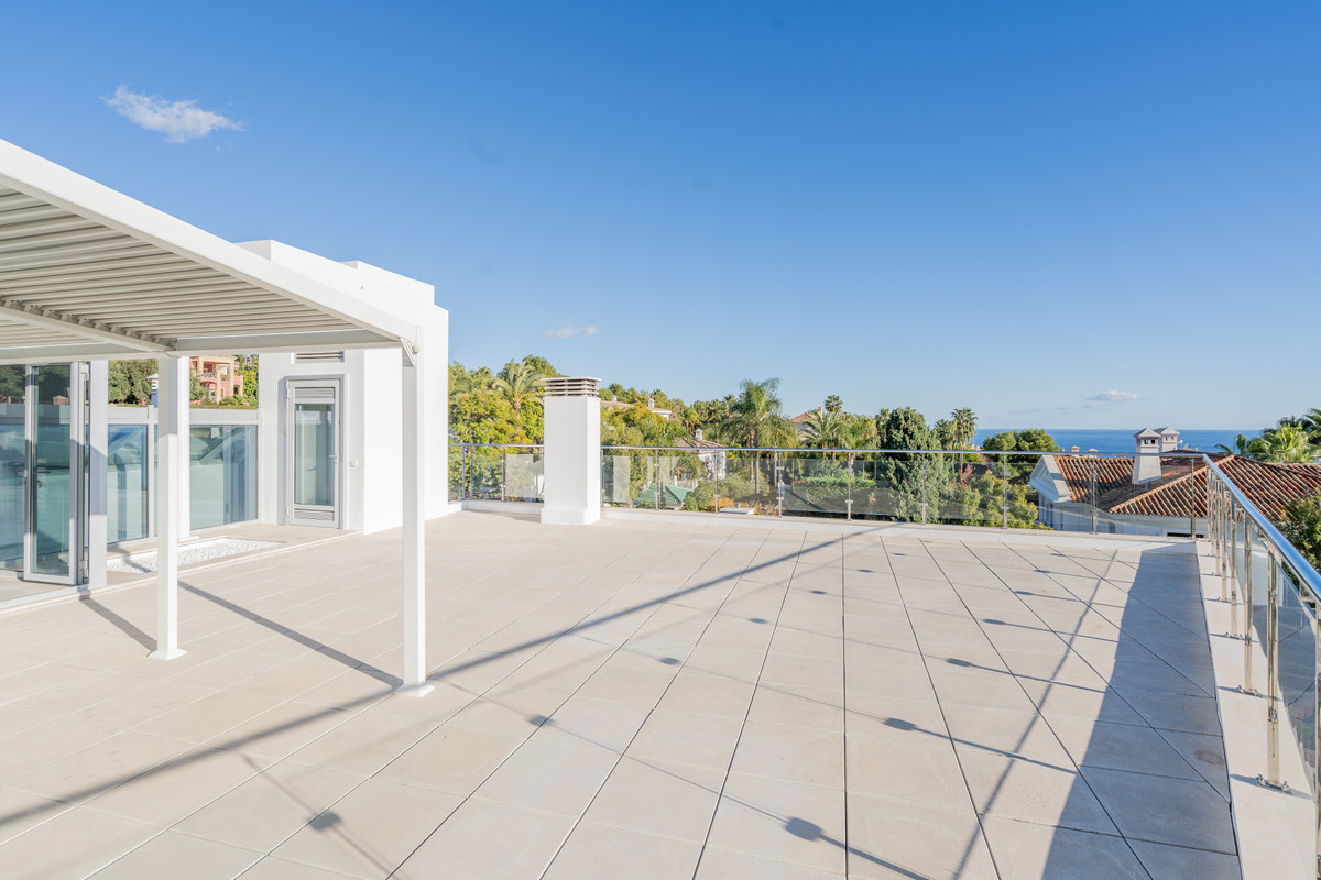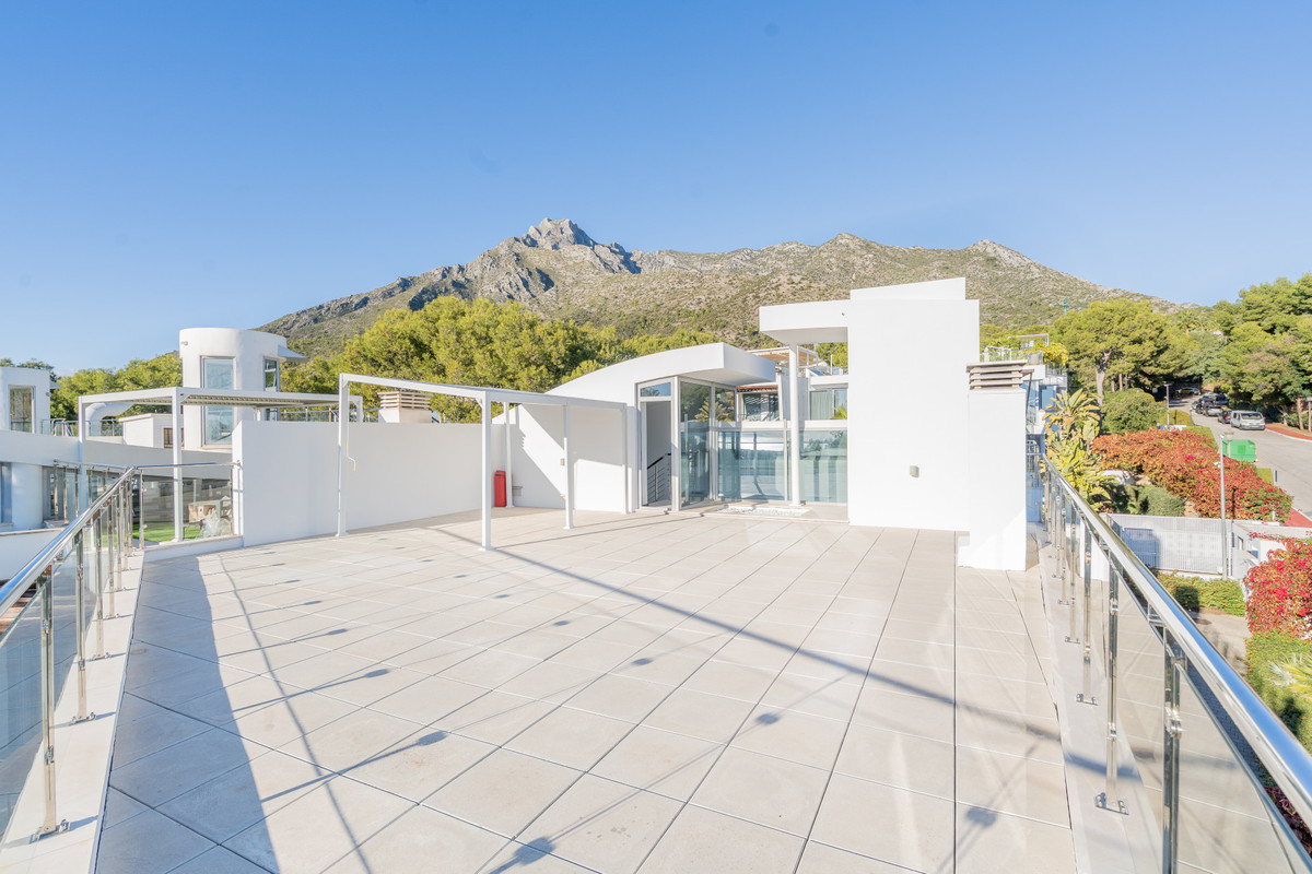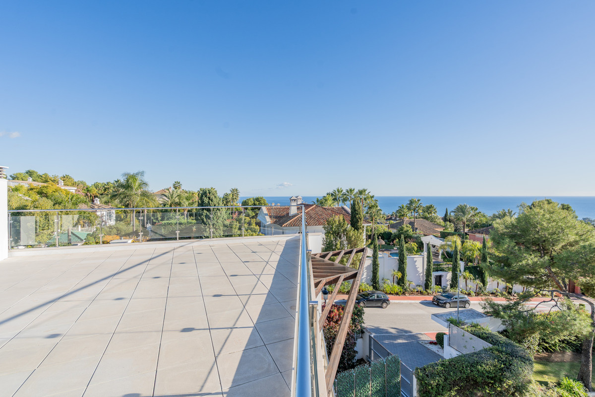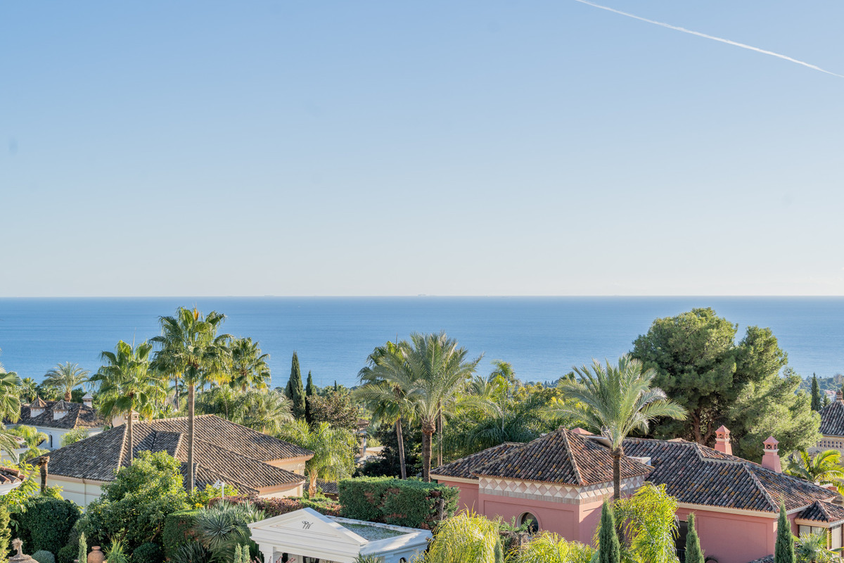 Permítame presentarle una villa muy especial en una de las zonas más privilegiadas y privadas de Marbella. La vivienda ofrece impresionantes vistas al mar, vistas a la montaña y se encuentra junto a un tranquilo pinar, un lugar donde se respira paz desde el primer momento.