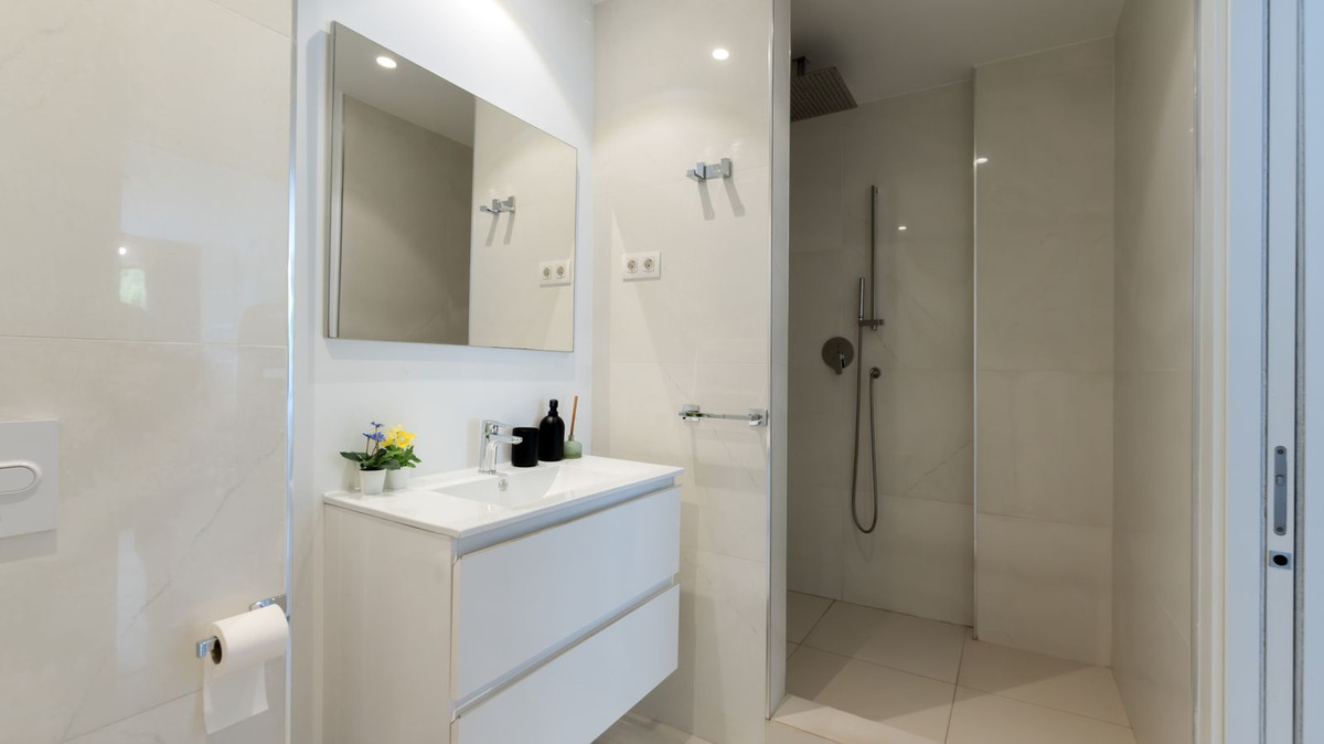 Con cuatro dormitorios, dos de ellos con baño en suite, la casa ofrece privacidad y confort para toda la familia. En la planta superior, un amplio solárium puede utilizarse como oficina o transformarse en un quinto dormitorio, mientras que un lavadero práctico completa la distribución.