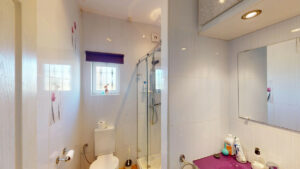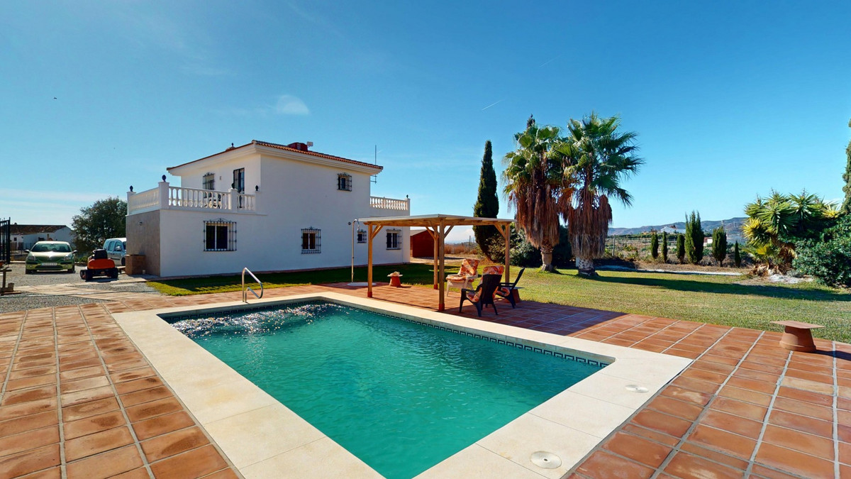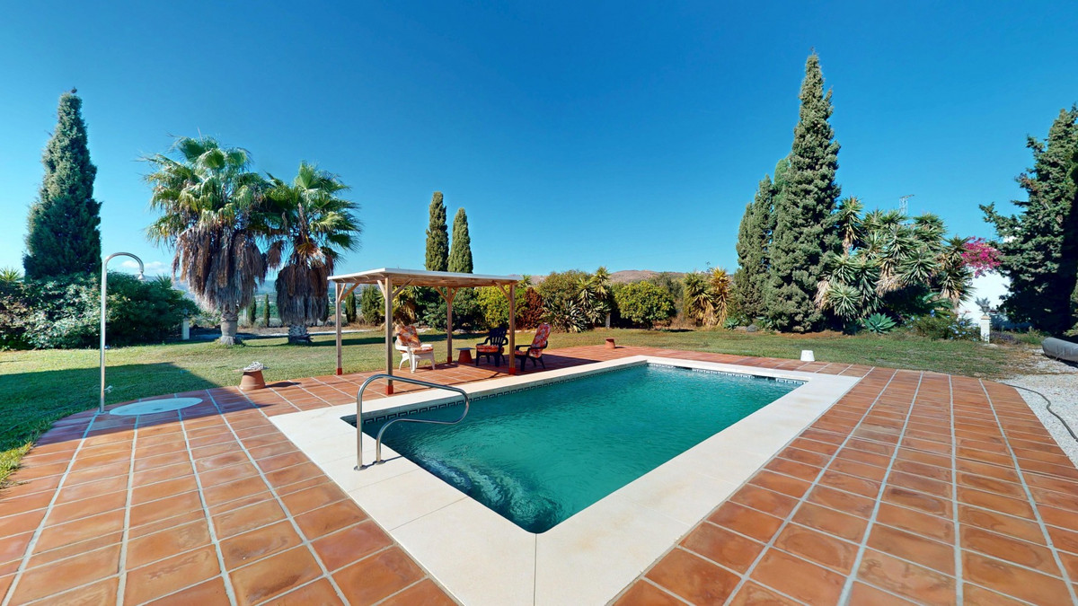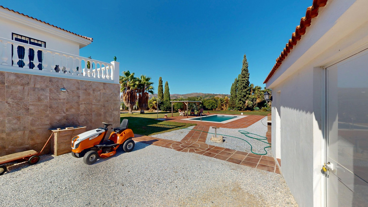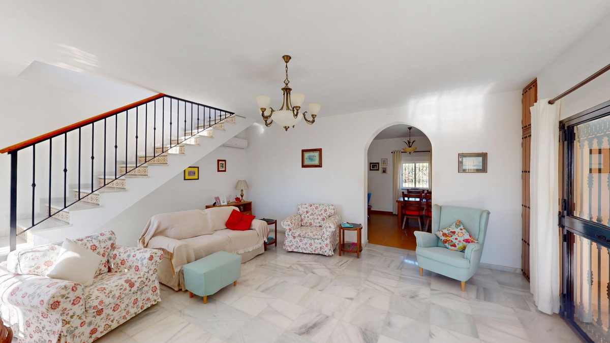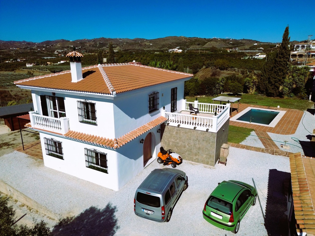 Descubra el auténtico estilo de vida mediterráneo en esta impresionante villa con casa de invitados, situada en el encantador pueblo de Almayate Alto, Málaga. Baños de sol, elegancia moderna y el encanto andaluz se combinan para ofrecerle un hogar perfecto para disfrutar y relajarse. La vivienda principal de 181 m2 se distribuye en dos plantas y cuenta con cuatro dormitorios y dos baños. En la planta baja encontrará un luminoso salón con suelos de mármol, una cocina moderna de concepto abierto y un dormitorio con baño en suite ideal para invitados o para vivir en una sola planta. En la planta superior se encuentran tres dormitorios más, incluyendo un espacioso dormitorio principal con mucha luz natural y acceso a una de las dos terrazas en la azotea, donde podrá disfrutar de vistas panorámicas al mar Mediterráneo. En la parcela de 4.890 m2 hay también una casa de invitados independiente de 27 m2, completamente equipada con cocina, baño y dormitorio perfecta para familiares, amigos o alquiler turístico. En el exterior, una piscina de 7,5 x 4 metros le invita a darse un baño refrescante, junto a una amplia terraza ideal para relajarse o cenar al aire libre bajo las estrellas. La propiedad dispone además de amplio aparcamiento, una caseta de madera multiusos, un trastero y un aseo exterior adicional. El jardín es un auténtico paraíso, con árboles de mango y aguacate, y amplias zonas abiertas que garantizan privacidad y tranquilidad. A tan solo 10 minutos de la playa, 15 minutos del centro de Torre del Mar y 35 minutos del aeropuerto de Málaga. Esta villa ofrece todo lo que hace que la vida en el sur de España sea tan especial: sol, espacio, vistas y confort. Una oportunidad única de poseer su propio paraíso en la Costa del Sol. Estamos encantados de poder presentar esta propiedad a usted pronto, ya sea personalmente o a través de la visión virtual. Porque este mundo, es único – como nuestra Axarquía. En Andalucía. En la Costa del Sol. Aquí, en el lado soleado de la vida…