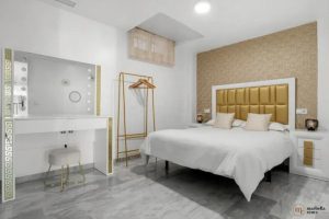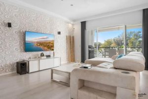 Preciosa villa con piscina y gimnasio privado, con 6 habitaciones y 4 wc, un garage para 4 coches. Increibles vistas al mar, a la montañay al campo de golf. a solo 5min de la playa de cabopino. Totalmente restaurada, con licencia turistica, lista para disfrutar o usarla de negocio-.