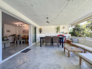 Grandes ventanales con mosquiteras inundan el espacio de luz natural, lo que lo hace ideal para visitas o familias numerosas.