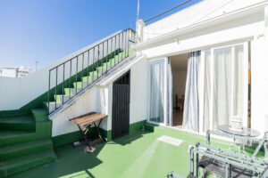 En la parte superior, una impresionante terraza de 90 m² ofrece un espacio abierto y luminoso, con vistas a los tejados típicos del casco antiguo: un lugar perfecto para crear un rooftop espectacular, zona chill-out o incluso un jardín urbano.