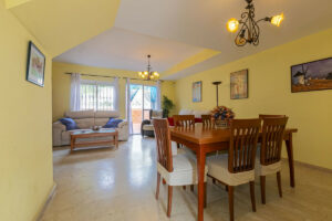 En la primera planta encontramos a la entrada una gran terraza muy luminosa y con vistas abiertas, la cocina (que podría unirse al salón-comedor), el aseo de cortesía y el salón-comedor con chimenea. Y en la parte trasera un gran patio.