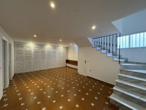 La planta semisótano dispone de tres habitaciones adicionales, todas con luz natural y armarios empotrados, además de un práctico espacio de almacenamiento bajo la escalera.