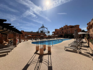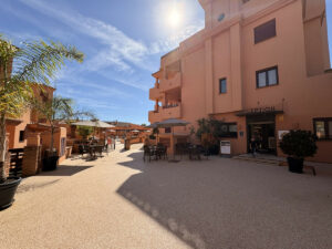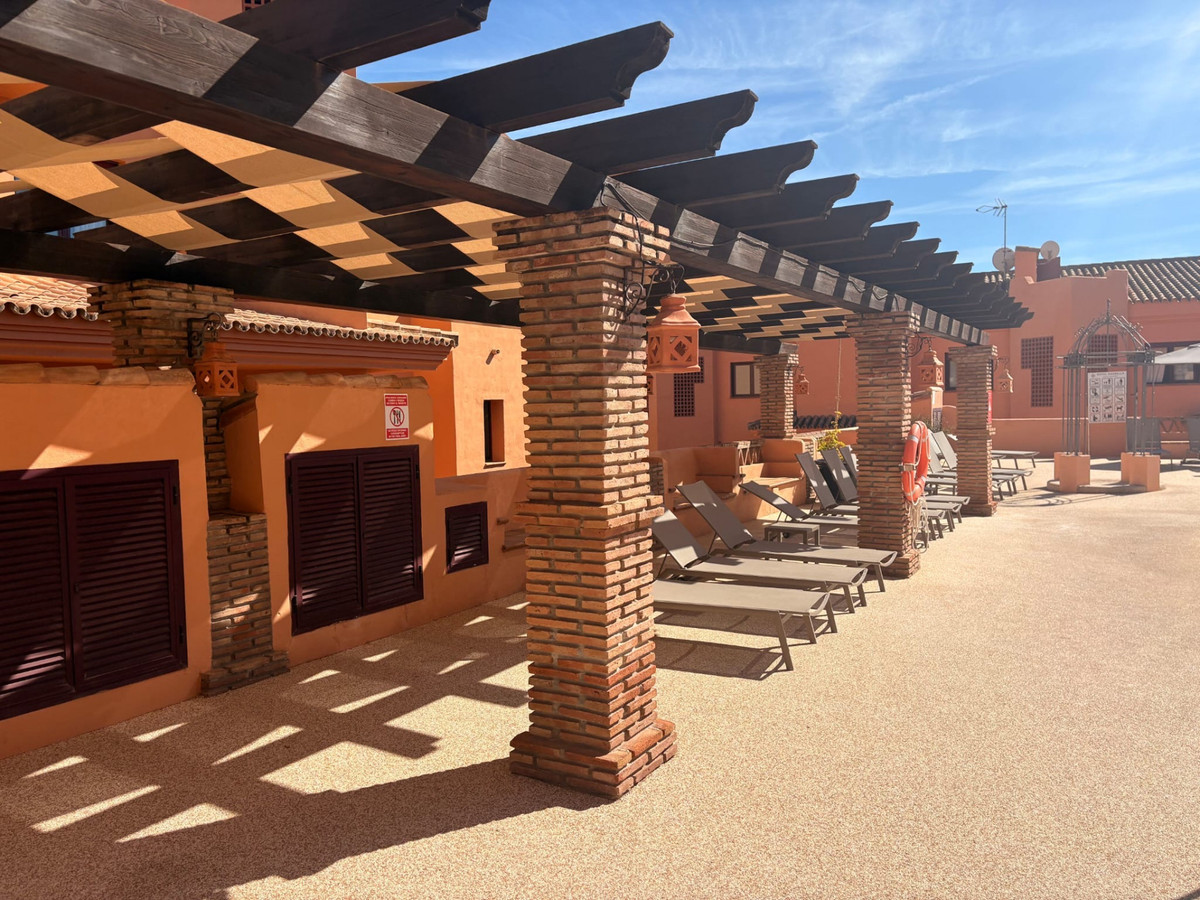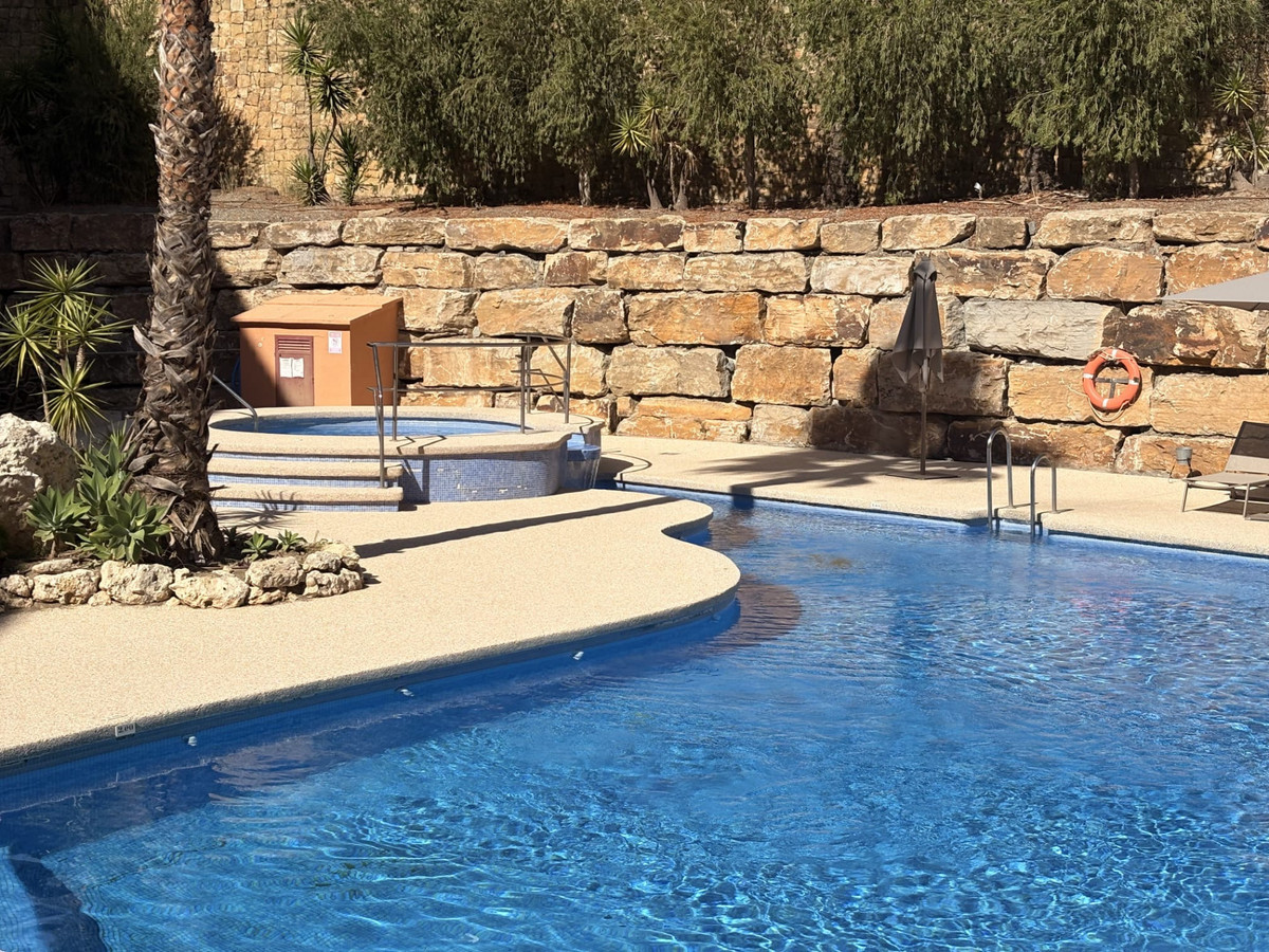 El apartamento forma parte de una urbanización cerrada y segura, que dispone de dos piscinas comunitarias, jardines cuidados, gimnasio, ascensor, vigilancia con cámaras y plaza de aparcamiento privada. Rodeado de campos de golf y a pocos minutos de El Paraíso Golf, Atalaya Golf y Capanes del Golf, ofrece un entorno tranquilo y bien comunicado con todos los servicios.