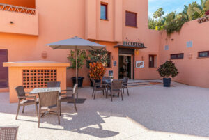 El apartamento forma parte de una urbanización cerrada y segura, que dispone de dos piscinas comunitarias, jardines cuidados, gimnasio, ascensor, vigilancia con cámaras y plaza de aparcamiento privada. Rodeado de campos de golf y a pocos minutos de El Paraíso Golf, Atalaya Golf y Capanes del Golf, ofrece un entorno tranquilo y bien comunicado con todos los servicios.