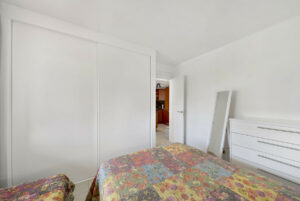El dormitorio es de buen tamaño y cuenta con armarios nuevos y espacio de almacenaje recientemente instalado. El baño ha sido completamente reformado, con un diseño moderno y una elegante ducha a ras de suelo.