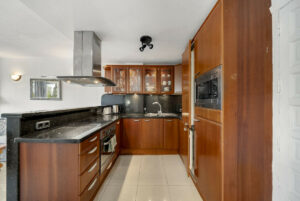 Al entrar en la vivienda, nos recibe una luminosa cocina americana de concepto abierto, que conecta perfectamente con un amplio salón-comedor lleno de luz natural. Desde aquí se accede a una generosa terraza doble, ideal para disfrutar tanto del interior como del exterior, con preciosas vistas a los jardines comunitarios y la zona de la piscina.