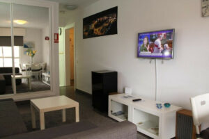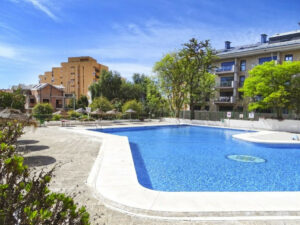 El edificio forma parte de un conjunto residencial muy bien cuidado, que ofrece recepción 24 horas, piscina comunitaria y zona de aparcamiento vallada para residentes. Además, junto al edificio hay una parada de autobús con conexión directa a la costa.