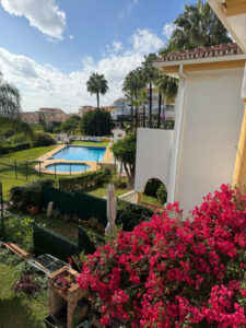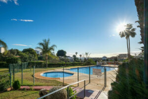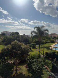 Se vende acogedor apartamento de 1 dormitorio y 1 baño, ideal para quienes buscan comodidad, estilo y tranquilidad. Ubicado en una zona privilegiada, esta vivienda destaca por su luminoso salón con acceso a una terraza acristalada, desde la que podrás disfrutar de vistas espectaculares a las zonas verdes ajardinadas, la piscina y, en días despejados, hasta el mar.