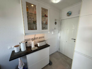 El balcón con vistas al mar es uno de los grandes atractivos de la vivienda, perfecto para disfrutar del desayuno al sol o relajarse por la tarde contemplando la puesta de sol sobre el Mediterráneo. El apartamento está bien equipado tanto para estancias cortas como largas, e incluye Wi-Fi, televisión internacional y lavadora. El complejo dispone de aparcamiento comunitario, lo que lo convierte en una opción práctica para quienes viajan en coche.