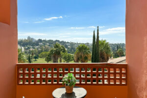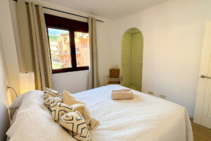 La vivienda se entrega totalmente amueblada y lista para entrar a vivir, ofreciendo un dormitorio y un baño con una distribución práctica. Su punto fuerte es la terraza orientada al sur, ideal para relajarse mientras se disfrutan de las vistas abiertas al campo de golf, junto con pequeñas vistas al mar y al fondo la icónica montaña de La Concha.