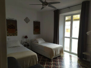 Distribución Acogedora: Un dormitorio espacioso con un precioso suelo hidráulico original – una joya decorativa – más un baño moderno para una vida cómoda.
