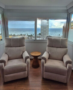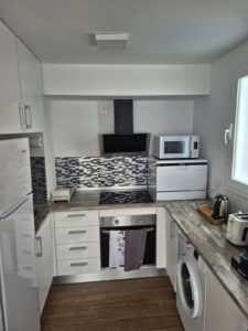 Con 40 m² de espacio luminoso con orientación sureste en la sexta planta y acceso conveniente mediante ascensor, este apartamento ha sido meticulosamente reformado para un confort moderno: nuevos sistemas eléctricos y de fontanería, una unidad de aire acondicionado de alta eficiencia, persianas eléctricas en todas las ventanas, una cama box-spring premium de 180 x 200 cm, una cocina totalmente equipada con electrodomésticos de gama alta, un baño rediseñado con calefacción por suelo radiante, una puerta de seguridad y un sistema de alarma preinstalado. Relájate en estilo supremo con dos sillones reclinables eléctricos, disfrutando de las impresionantes vistas panorámicas al mar que inundan el espacio de luz natural. La azotea del edificio está disponible para residentes, mejorando el disfrute exterior.