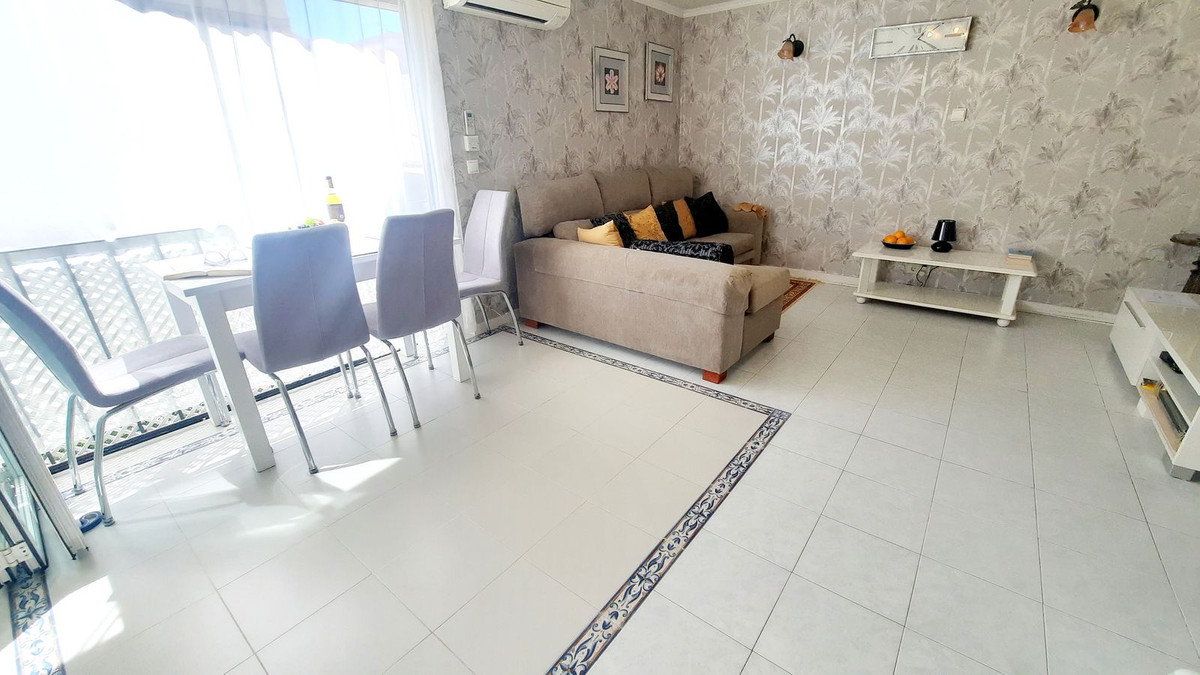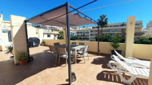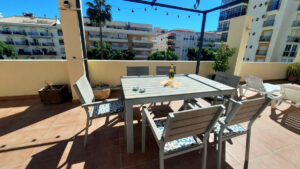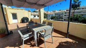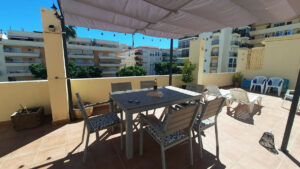Excelente ubicación!!! Se vende ático en una de las avenidas principales de Fuengirola muy soleado y luminoso con un fantástico solárium comunitario con pérgola, barbacoa, comedor y tumbonas que los vecinos pueden utilizar en cualquier momento. La propiedad ha sido renovada con nuevos pisos de madera en el dormitorio, nuevo baño con ducha y salón comedor de planta abierta con balcón.. Edificio sin ascensor. Tiene aire acondicionado y persianas eléctricas. Ideal para un lugar de vacaciones.