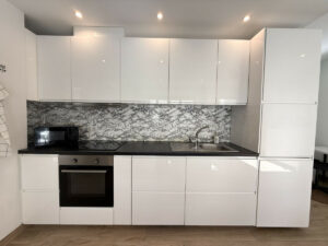 El apartamento cuenta con un dormitorio y un baño, así como una encantadora terraza orientada al oeste de aproximadamente 7 m², perfecta para disfrutar del sol de la tarde. Al entrar, se accede desde la terraza a la luminosa y espaciosa sala de estar con cocina abierta completamente equipada. La cocina incluye lavavajillas y también cuenta con un práctico espacio de almacenamiento con lavadora incorporada.