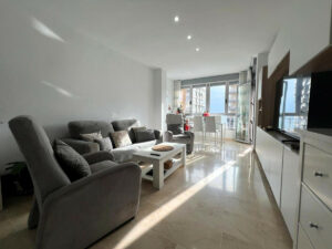 Desde el salón se accede a la agradable terraza con vistas al mar y a la avenida principal, donde, además de las vistas, se puede disfrutar del suave sonido de las olas, aportando una sensación constante de calma y cercanía al Mediterráneo. La propiedad resulta especialmente atractiva tanto para uso residencial como para alquiler, gracias a su ubicación y características. Dispone de parking comunitario.