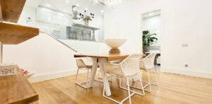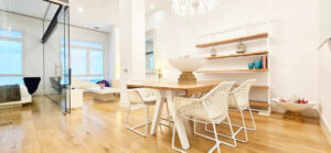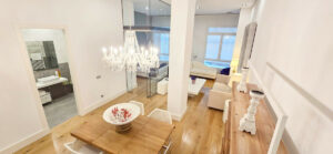 El piso tiene una superficie de 140 m2, su diseño es vanguardista y contemporáneo con una gran cocina, salón comedor a dos alturas, techos altos, ventanales con total insonorización y un dormitorio enteramente acristalado. La vivienda dispone de un amplio baño con ducha, suelos de madera y porcelánico, aire acondicionado centralizado y todos los electrodomésticos, no le falta un detalle.