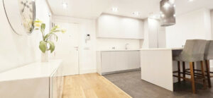 El apartamento se encuentra en la primera planta de un edificio señorial totalmente rehabilitado con ascensor y elegantes zonas comunes.
