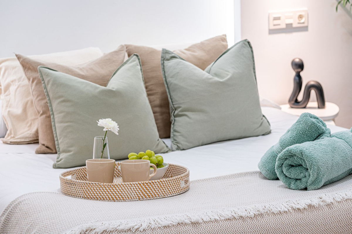 El interior está decorado con un diseño minimalista de estilo nórdico, detalles artísticos y una cocina de diseño equipada con todos los electrodomésticos, incluyendo lavavajillas.