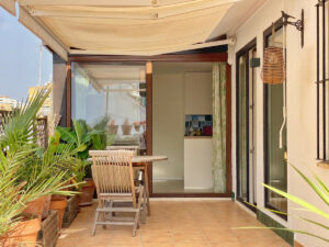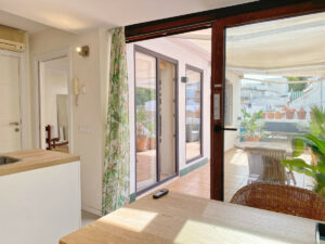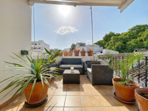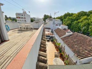 Situado en una tranquila calle peatonal del casco antiguo de Marbella, super tranquilo y sin ruidos. El apartamento cuenta con un dormitorio independiente, un cuarto de baño con ducha con ventana al exterior, un acogedor salón y cocina equipada con comedor, ambos con salida directa a una fantástica terraza exterior de 25 m2, donde hay diferentes zonas tanto para relajarse o tumbarse a tomar el sol, como para sentarse a comer en el exterior.