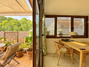 Adicionalmente hay otra fantástica terraza en la azotea del edificio donde hay una pequeña habitación comunitaria, que en la actualidad se usa como cuarto de limpieza y lavandería de este apartamento.
