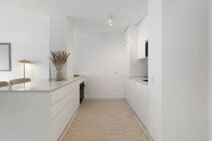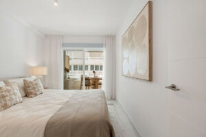 El apartamento ha sido totalmente reformado con un diseño contemporáneo, el interior cuenta con un diseño de planta abierta que maximiza la luz natural y la armonía. El luminoso salón fluye en una cocina elegante y totalmente equipada con electrodomésticos integrados y acabados modernos. El amplio dormitorio ofrece armarios empotrados y un ambiente sereno, mientras que el elegante baño muestra accesorios de alta calidad y un estilo limpio y moderno.
