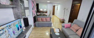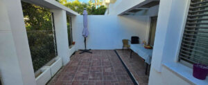 3551-V Se vende espectacular piso en una urbanización con jardines y 6 piscinas, en una primera planta con ascensor, consta de un salón comedor muy amplio con chimenea y casete , una cocina independiente completamente amueblada de alta calidad, 1 dormitorio doble con dos armarios empotrados, una baño con bañera jacuzzi, un patio de mas de 24m2 con barbacoa y ducha que da a los jardines de la urbanización,aire acondicionado centralizado frio/calor, 1 plaza de parking para un coche y una moto, un trastero, el piso es de estilo moderno y está muy bien conservado,campos de golf a 5 minutos y playa a 10 minutos. Para entrar a vivir de inmediato.