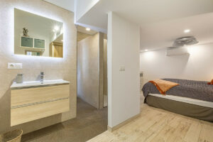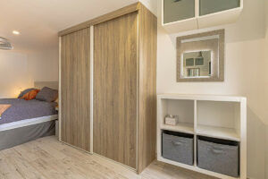 Este amplio apartamento de 1 dormitorio puede alojar cómodamente a una familia de 4 a 5 personas. Cuenta con una habitación abierta en la entrada que se puede convertir en un dormitorio pequeño, y una entreplanta junto al salón con espacio para una cama adicional.