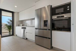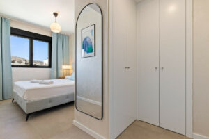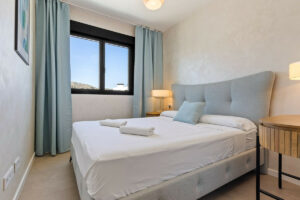 El dormitorio ofrece un refugio de paz, amplio y luminoso, mientras que el salón se abre sin esfuerzo a una terraza privada, donde las mañanas comienzan con vistas al mar y las noches terminan bajo cielos estrellados. Cada elemento ha sido cuidadosamente pensado, desde el mobiliario elegante hasta la cocina totalmente equipada, lista para disfrutarla desde el primer momento.