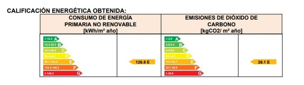 Certificado energético con calificación E, de consumo de energía 126.8 y de emisiones 26.1.