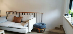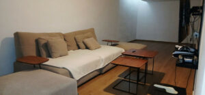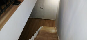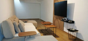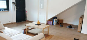 El salón ofrece un ambiente luminoso y acogedor y se convierte en el verdadero corazón de la vivienda. Desde aquí, se accede directamente a la planta inferior de la propiedad, aportando una dimensión adicional de espacio y versatilidad al apartamento.