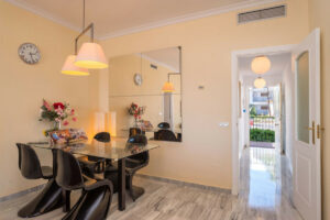 Se accede al apartamento por un pasillo. A mano derecha se encuentra la cocina totalmente equipada, con lavadora y caldera nuevas. Enfrente se encuentra el salón / comedor amplio y luminoso. En este salón se pueden apreciar los muebles de calidad y las vistas desde la terraza donde ofrece sol desde aproximadamente las 14:00h hasta la puesta del sol. ¿Se imagina las preciosas puestas de sol que podrá contemplar? Desde el salón se accede a un pasillo más pequeño que da acceso al baño de invitados y al segundo dormitorio, así como, a la izquierda, al dormitorio principal con baño en suite. Desde el dormitorio principal se disfruta de las mismas vistas a las montañas.