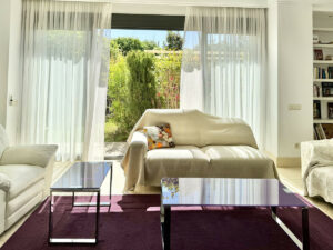 Única en su clase, esta propiedad se complementa con el acceso a un jardín de más de 100 metros cuadrados de uso privado, desde donde se puede contemplar las impresionantes vistas de la costa, Gibraltar y las montañas del Rif marroquí en el horizonte, escuchando el agua que sale de las fuentes. .