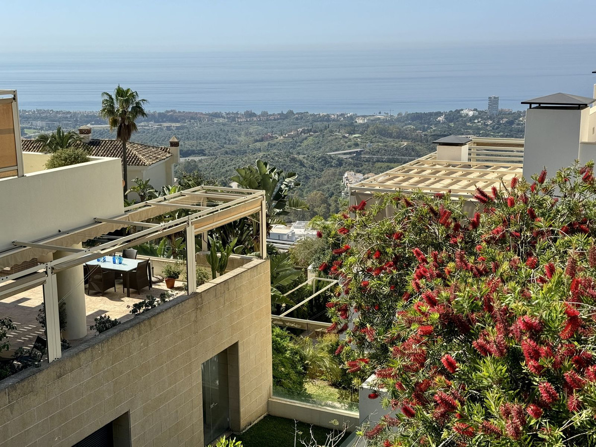 Ubicado en un entorno natural y tranquilo, rodeado de robles y pinos, en un prestigioso complejo contemporáneo con servicio de seguridad y conserje 24h, este amplio apartamento de esquina de 2 dormitorios ofrece algunas de las mejores vistas al Mediterráneo de Marbella.