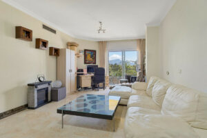 Ubicado en la codiciada zona de Bel Air, en la Costa del Sol, este apartamento en planta baja elevada, completamente amueblado, ofrece fantásticas vistas.