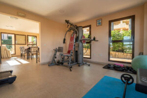 La urbanización destaca por sus amplias zonas ajardinadas y su completo equipamiento, que incluye una gran piscina exterior, solárium, gimnasio y una zona wellness con spa, sauna seca y húmeda, jacuzzi y piscina interior climatizada. Un entorno pensado para disfrutar del bienestar y la vida mediterránea durante todo el año.
