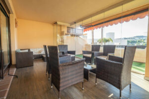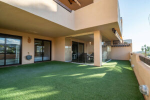 El apartamento cuenta con una amplia terraza privada que combina una zona con césped artificial y otra acristalada con suelo de parquet, creando un espacio versátil que puede disfrutarse tanto en invierno como en verano. En el interior, cada detalle ha sido cuidado para ofrecer una sensación de armonía y confort. Dispone de aire acondicionado por conductos, garantizando una temperatura agradable en cualquier estación.