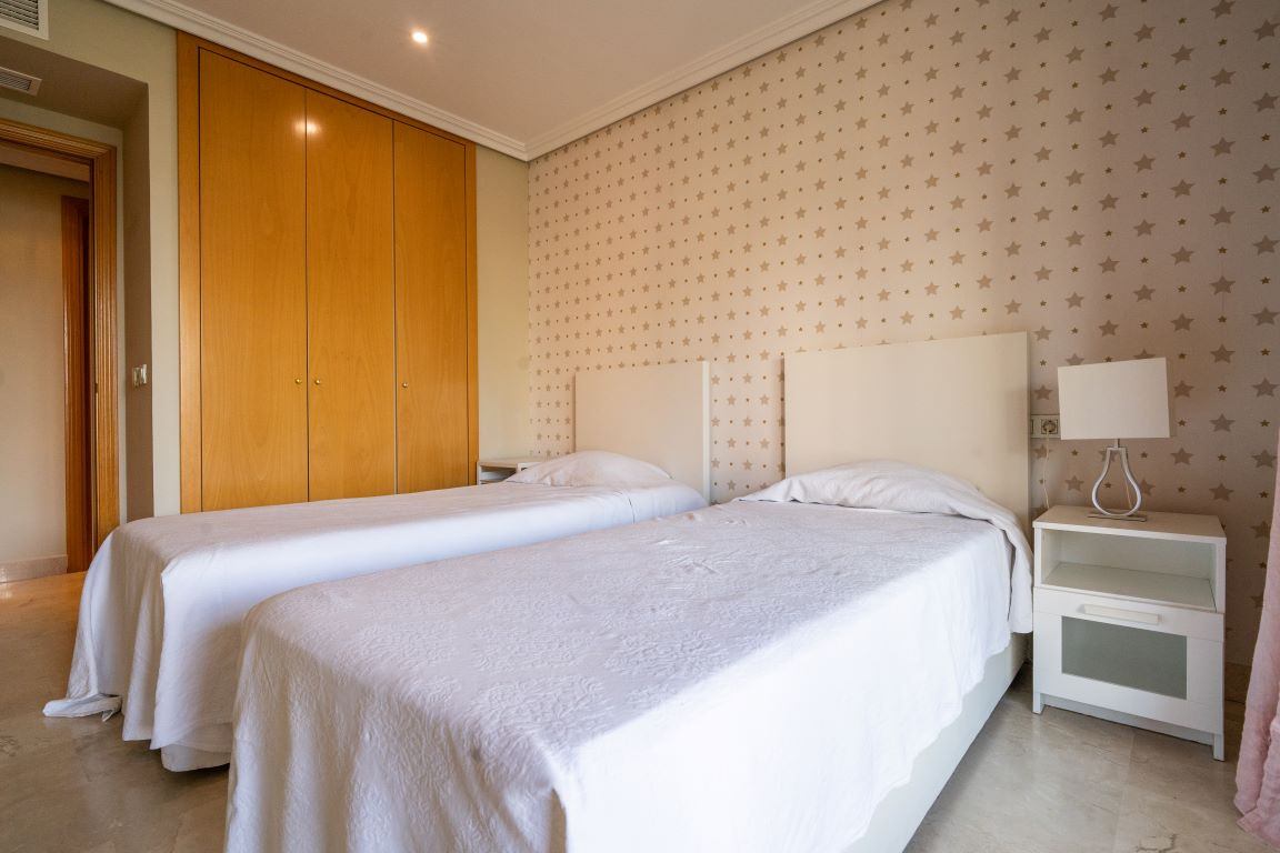 El dormitorio principal en suite incluye un espacioso vestidor, mientras que las demás habitaciones y el pasillo cuentan con armarios empotrados, ofreciendo un excelente aprovechamiento del espacio. La vivienda se completa con plaza de garaje subterránea y trastero, además de servicio de seguridad privada y conserjería, que aportan un alto nivel de privacidad y tranquilidad.
