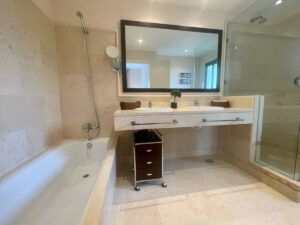 Precioso apartamento de 2 dormitorios ubicado en Capanes del Golf, Benahavís, una urbanización popular por su ubicación y amplitud. Gracias a su orientación, este apartamento disfruta del sol en la terraza desde la mañana hasta la noche. Una de las pequeñas piscinas exteriores es fácilmente accesible desde este bloque. El complejo cuenta con 5 piscinas exteriores y un spa interior con gimnasio, sauna y baño de vapor. Ubicado en la primera planta, este apartamento ofrece vistas a los jardines y al campo de golf. Es perfecto para quienes buscan una casa de vacaciones o para vivir a largo plazo. Dispone de seguridad 24 horas y una oficina comunitaria. Para su comodidad, esta propiedad incluye dos plazas de aparcamiento. ¡Contáctenos ahora para visitarlo!