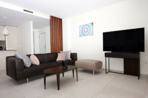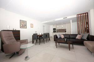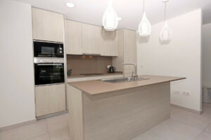 Diseñado para ofrecer comodidad durante todo el año, el apartamento cuenta con armarios empotrados, aire acondicionado y calefacción eléctrica frío/calor. También dispone de plaza de garaje subterránea, trastero privado, ascensor y accesos adaptados para personas con movilidad reducida. Los residentes pueden disfrutar de una gran piscina comunitaria y de un gimnasio totalmente equipado dentro del complejo, que destaca por su seguridad y su impecable mantenimiento.