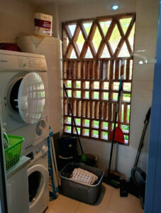La vivienda cuenta con una cocina independiente totalmente equipada y un lavadero para mayor comodidad.