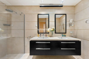 Este apartamento elevado en planta baja se encuentra en la codiciada zona de Buenavista, La Quinta, una prestigiosa comunidad residencial reconocida por su tranquilidad, seguridad y entornos de gran belleza. Ubicada en las hermosas colinas de Benahavís, a pocos minutos en coche de Puerto Banús, Marbella y la Milla de Oro, esta exclusiva urbanización ofrece a sus residentes la combinación perfecta de vida apacible y fácil acceso a los mejores campos de golf, restaurantes y servicios de la costa. La comunidad cuenta con jardines cuidados y una gran piscina, proporcionando un elegante y relajado estilo de vida mediterráneo.