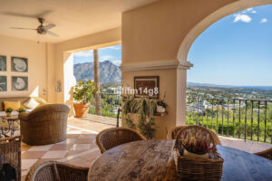 El apartamento en sí es espacioso, luminoso y está bellamente presentado. La zona de estar y comedor de planta abierta incluye una acogedora chimenea y se abre directamente a una terraza cubierta con vistas panorámicas al mar Mediterráneo, la montaña de La Concha, los jardines comunitarios y el campo de golf de La Quinta. La cocina, totalmente equipada, dispone de una encantadora zona de desayuno y un lavadero independiente para mayor comodidad. La propiedad cuenta con dos amplios dormitorios y dos modernos baños, ambos con duchas a ras de suelo y calefacción por suelo radiante. El dormitorio principal disfruta de acceso directo a la terraza principal y baño en suite, mientras que el segundo dormitorio es igualmente confortable y está atendido por un baño independiente.